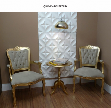 Projeto de interiores comercial. Em um projeto comercial cada espaço precisa ser único, a proposta para esse ambiente era mesclar o clássico x moderno apostando em tendências como o revestimento 3D e muito dourado nos detalhes. A combinação perfeita para criar uma atmosfera luxuosa.+Detalhes