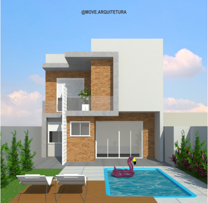 Projeto de construção residencial. As áreas integradas guiaram a criação da residência, conduzindo a arquitetura e culminando na criação do térreo com planta livre. A fachada da casa é um mix de materiais: madeira, tijolo e concreto, além da presença de dois painéis deslizantes.