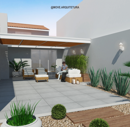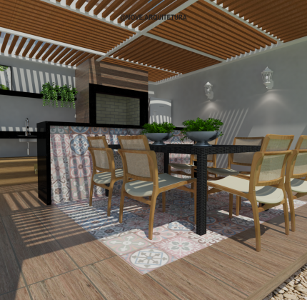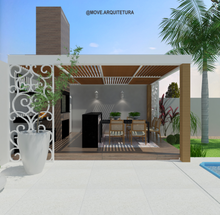Projeto de ambientação, um pátio não precisa ser apenas um pátio né? aqui temos um espaço de convívio e vivência. A parede verde proporciona conforto térmico para desfrutar da piscina ao mesmo tempo que embeleza e trás muito verde ao ambiente, ao fundo podemos ver o espaço de área gourmet.