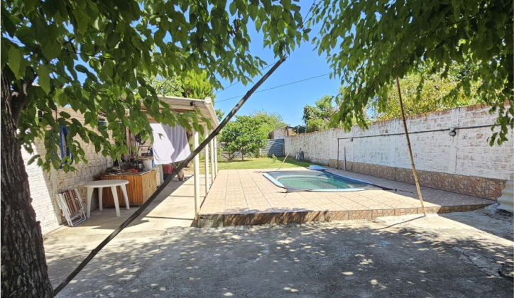Casa com 3 dormitórios, cozinha, banheiro, garagem 2 carros, piscina e área coberta nos fundos com banheiro. Terreno tamanho 8,70 x 52,80m.